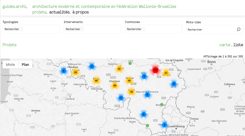 guides.archi est une base de données illustrée dédiée à l’architecture moderne et contemporaine en Fédération Wallonie-Bruxelles.