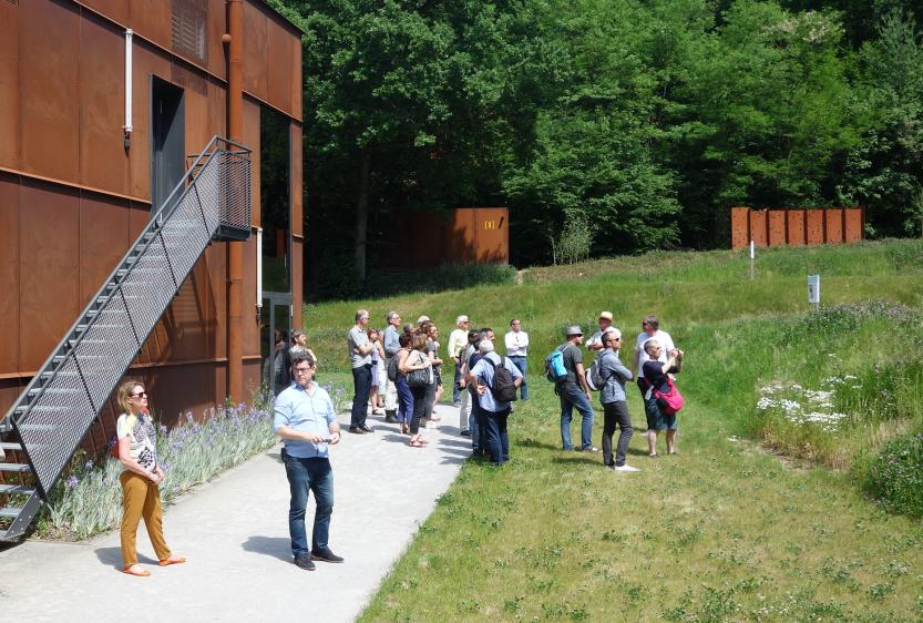 Du 25 au 28 mai, la Maison de l'architecture de Bourgogne a organisé son voyage d'études annuel en Wallonie, à la découverte de l'architecture moderne et contemporaine. Sur base des projets publiés dans le numéro spécial que la revue française d'Architectures avait dédié à Wallonie-Bruxelles (n° 241, décembre 2015), elle a établi son programme en concertation avec la Cellule architecture, s'appuyant également sur les publications éditées par elle (Architectures Wallonie-Bruxelles Inventaires 2013-2016, guides d'architecture de Liège et Mons). Représentants de la maîtrise d'ouvrage et de la profession, architectes praticiens, enseignants, ingénieur et usagers de la Bourgogne ont ainsi visités des équipements, en présence de leurs concepteurs, à La Louvière (Centre Keramis), Mons (Arsonic, Manège.Mons, logements Caserne, Maison Folie, Mundaneum, Artothèque, MMM), Charleroi (Quai 10, Musée de la Photographie), Montigny-le-Tilleul (Hôtel de Ville), Flémalle (Préhistomuseum), Liège (Coteaux de la Citadelle, Théâtre de Liège), Spa (Centre ADEPS) et Dison (Interlac).