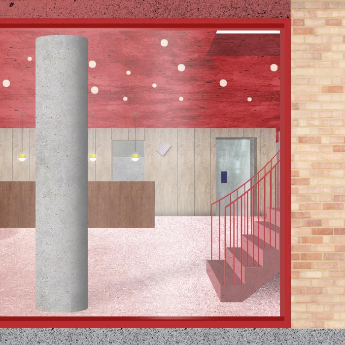 À propos des architectes, A+ explique que "leur processus créatif intègre de façon récurrente des références et la réalisation de maquettes – qu’ils utilisent souvent comme outil de travail, d’élaboration du projet et de discussions en évolution constante, et parfois comme dispositif de représentation. Damsin et Haerens sont généreux dans la diversité des scénarios proposés au maitre d’ouvrage et ils portent une attention particulière à la compréhension du projet par tous ses acteurs. Ils aiment se décrire comme étant des amateurs plutôt que des spécialistes, afin de cultiver leur curiosité et de diversifier leurs activités."