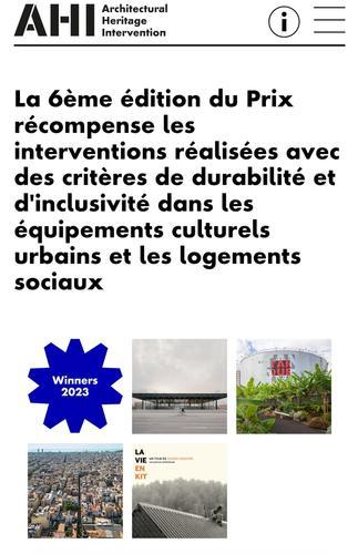 Le documentaire La vie en kit réalisé par Elodie Degavre et produit par Playtime Films, avec le soutien de la Cellule architecture, est lauréat du European Award for Architectural Heritage Intervention (AHI) dans la catégorie Divulgation.