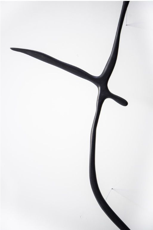 Déployée et suspendue au plafond du rez-de-chaussée de la Maison du tourisme tel un trait qui traverse l’espace, l’œuvre de Michel Couturier s’inspire des plans des souterrains historiques de Philippeville, qui servaient de défense avancée à cette place forte modifiée par Vauban (1656). De couleur anthracite, elle "évoque le graphite ou l’encre du dessin" (extrait de la note d’intention). Par cette intervention, l’artiste rend perceptible de façon permanente une part non visible et remarquable de l’histoire de la ville, enfouie quelques mètres plus bas sous les pieds des visiteurs.