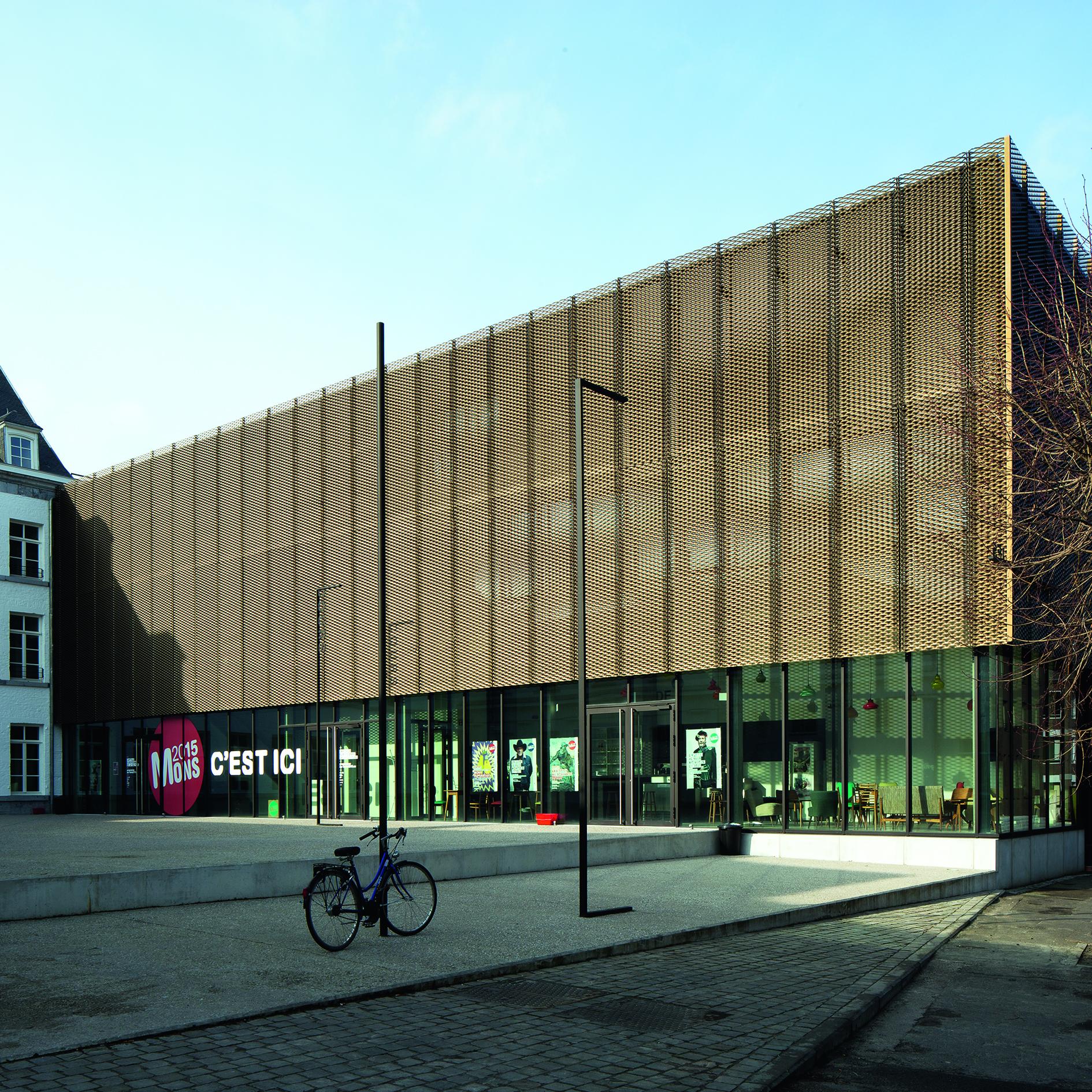 Au croisement de l’art conceptuel et de l’art concret, Peter Downsbrough investit les lieux et pose une réflexion sur le rapport entre le signe et l’environnement. Son approche épurée, faite d’un vocabulaire alphabétique, géométrique simple, rend ses installations aussi discrètes que puissantes. Il oscille entre écriture et sculpture jouant avec le cadrage, la perspective, la symétrie. Comme à Mons, le langage - souvent des prépositions et/ou conjonctions- est omniprésent et l’œuvre se retrouve à l'intérieur comme à l'extérieur. L’emploi des lignes et des mots souligne l’architecture et dévoile un récit dont le spectateur s’approprie le sens élargi.