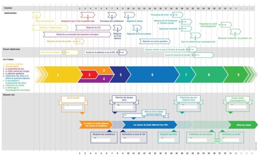 Depuis 2012, la Cellule architecture met à disposition de tous les maîtres d’ouvrage publics en Wallonie et à Bruxelles, en ligne, un guide pratique des marchés d’architecture. Ce guide reprend, pas à pas, toutes les étapes d’un marché public de maîtrise d'oeuvre (désignation d’équipes d’auteurs de projet). L’ensemble des documents-types nécessaires aux procédures  (avis de marché, cahier des charges, etc.) peuvent y être téléchargés. Sont ici ciblés les commanditaires publics ou privés soucieux d'inscrire la construction, rénovation ou aménagement de leurs équipements dans une dynamique de maîtrise d'ouvrage exemplaire - à l'instar des lauréats du Prix de la Maîtrise d'ouvrage publique. Ces outils ont été élaborés en s'appuyant sur la pratique des marchés d'architecture éprouvée par la Cellule architecture depuis plus d'une décennie. Ils sont constamment mis à jour, sur base des expériences vécues sur le terrain et en regard de l’évolution législative en matière de marchés publics. Téléchargez dès à présent nos documents à jour !