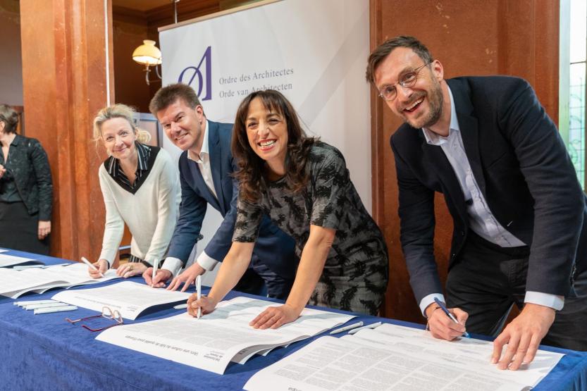 Ordre des Architectes / De g. à d.: C. Van Zeeland (repr. A. Greoli), S. Gatz, F. Laanan, P. Smet