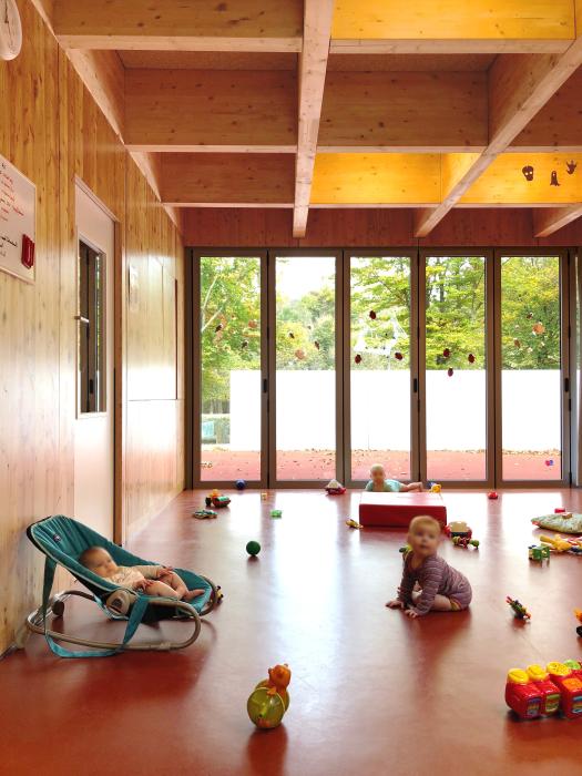 Lauréat du marché d’architecture, Hart Berteloot Atelier Architecture Territoire vient de livrer la crèche de Habay-La-Neuve. Situé au coeur du parc du Châtelet, à côté de l'Administration communale, l'équipement se développe sur un seul niveau de plain pied. Il offre un jardin intérieur afin que les enfants puissent jouer en toute sécurité, un espace dont bénéficie tout autant les parents que le personnel de l’établissement. Construit en ossature et en finition bois, le projet intègre des dispositifs écologiques de conception low tech : orientation, gestion de l’ombre, récupération des eaux de pluie pour l’arrosage des espaces extérieurs, gestion des déchets pendant et après le chantier, utilisation d’éco-matériaux (peinture, isolant, rideaux, structure)...