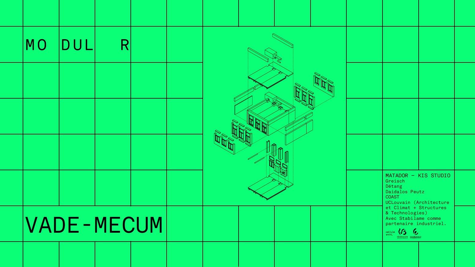 Après  la production et la présentation d'un premier Mock-Up, les volumes 1 & 2 du vade-mecum sont sortis ! En expliquant les principes de composition et de conception de Modul R, ils permettent, dès à présent, une appropriation de l'outil et son utilisation (étude de faisabilité, esquisse, etc.). Le volume 3 (sortie prévue en 2025) permettra sa mise en oeuvre concrète (dossier d’exécution et mise en concurrence d’entreprises). Une brochure a également été réalisée pour comprendre tout le potentiel du système en quelques notions clef !
