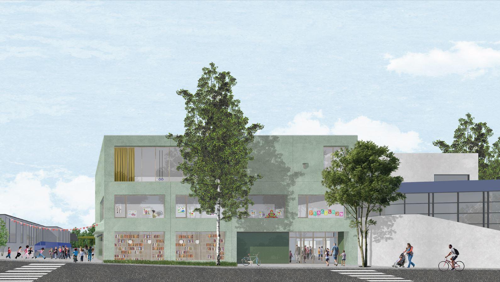 Le projet vise la restructuration et l'extension de l'école fondamentale Singelijn afin de répondre à l'augmentation de sa population ainsi qu'à ses spécificités pédagogiques: pédagogie active et inclusive. L'école présente en effet la particularité d'inclure 20 enfants souffrant de handicap (plus particulièrement sourds et malentendants) en intégration. Il s'agit de rénterpréter l'usage des bâtiments existants frappés de vétusté (datent des années’70) ou conçus à la hâte (salle de psychomotricité, construite dans les années’2000). Le projet est aussi l'occasion d'améliorer la cohérence du site, en ce compris ses liaisons avec la zone verte voisine utilisée au quotidien comme terrain de sport et de récréation.