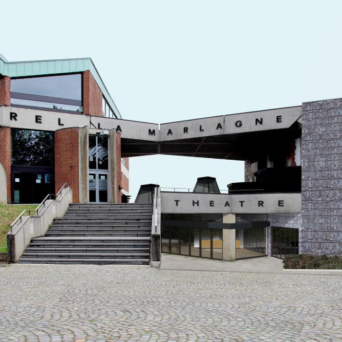 Construit entre 1971 et 1987 par l'architecte Charles Burton, la Marlagne est véritable colosse, fruit d'une époque où les préoccupations environnementales n'étaient encore qu'un murmure. Un "monstre" dissimulant dans ses entrailles des merveilles et autres perles architecturales et scénographiques. Un monstre qui a toutefois déjà bien vécu et dont il est aujourd'hui bien difficile d'hériter tant aux regards des pratiques du théâtre qu'au regard des exigences énergétiques contemporaines.