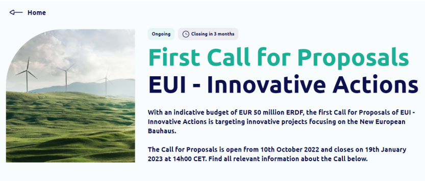 Dans le cadre du New European Bauhaus, l'European Urban Initatitive (EUI) vient de lancer son premier appel à propositions d'actions innovantes en matière de développement urbain durable : le EUI – Innovative Actions.