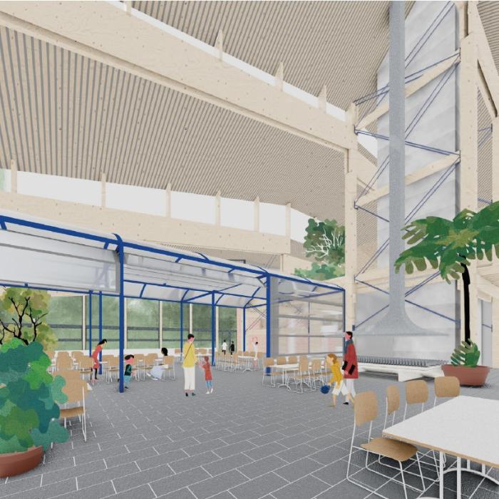 La proposition lauréate répond à ces objectifs avec subtilité, au travers d’une stratégie d’intervention jouant avec les caractéristiques essentielles de l’existant. En se réappropriant le langage déjà en place, les choix architecturaux posés apportent plus qu’une réponse technique : ils misent sur la possibilité d’habiter différemment ce lieu de rencontre et de culture.