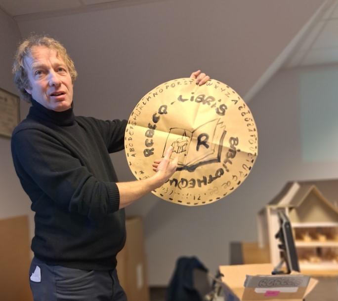 Son intervention se compose de trois éléments qui s’intègrent dans l’intimité des livres ainsi que dans le quotidien urbain des Rebecquois: la création d’un ex-libris propre à la bibliothèque de Rebecq, gaufré à sec, dans chaque livre, une grande plaque mère reprenant le motif de l’ex-libris située en dialogue avec l’entrée de la bibliothèque ainsi que placement de 58 clous, gravés d’une lettre de l’alphabet ou de ponctuation, disséminés sur l'ensemble du territoire de la commune.
