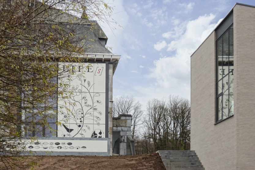 Si le dernier en date, imaginé pour l’hôpital psychiatrique du Centre Les Marronniers à Tournai (en cours de reconditionnement par Archipelago et l’Atelier d’Architecture Daniel Delgoffe) n’en est encore qu’à ses prémices, une fresque conçue pour l’IPPJ de Fraipont, dont Daniel Delgoffe a également mené la rénovation, couvre déjà l'une des façades du bâtiment. Une œuvre participative par excellence, puisque l’artiste l’a composée avec les jeunes hébergés sur place.