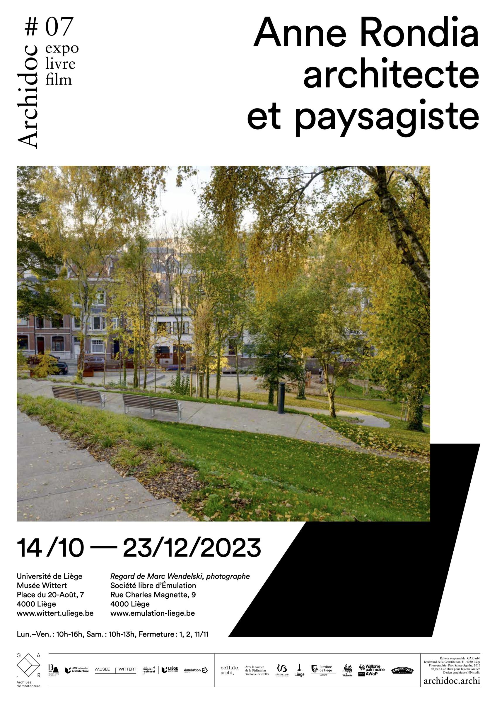 L'Archidoc #07 prendra place au Musée Wittert à Liège le 14 octobre 2023, et sera consacré à l'architecte et paysagiste Anne Rondia.